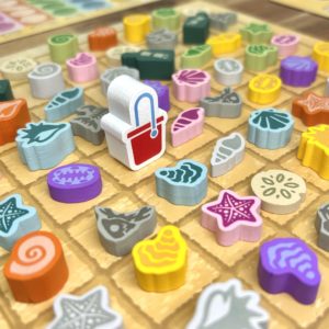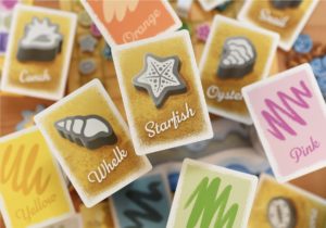 L’équipe de KTBG, Joshua et Helaina Cappel, a d’abord décidé de changer le thème, passant de la cueillette des fleurs à la collecte des coquillages. Le jeu devait s’appeler Sanibel, du nom d’une plage américaine qui semble connue pour ses coquilles, mais nous avons alors appris que c’était déjà le nom d’un jeu d’Elisabeth Hargrave, qui devait arriver un peu avant le mien – il était en effet présenté à Essen. Nous avons donc opté pour le plus générique Seashells, Coquillages.