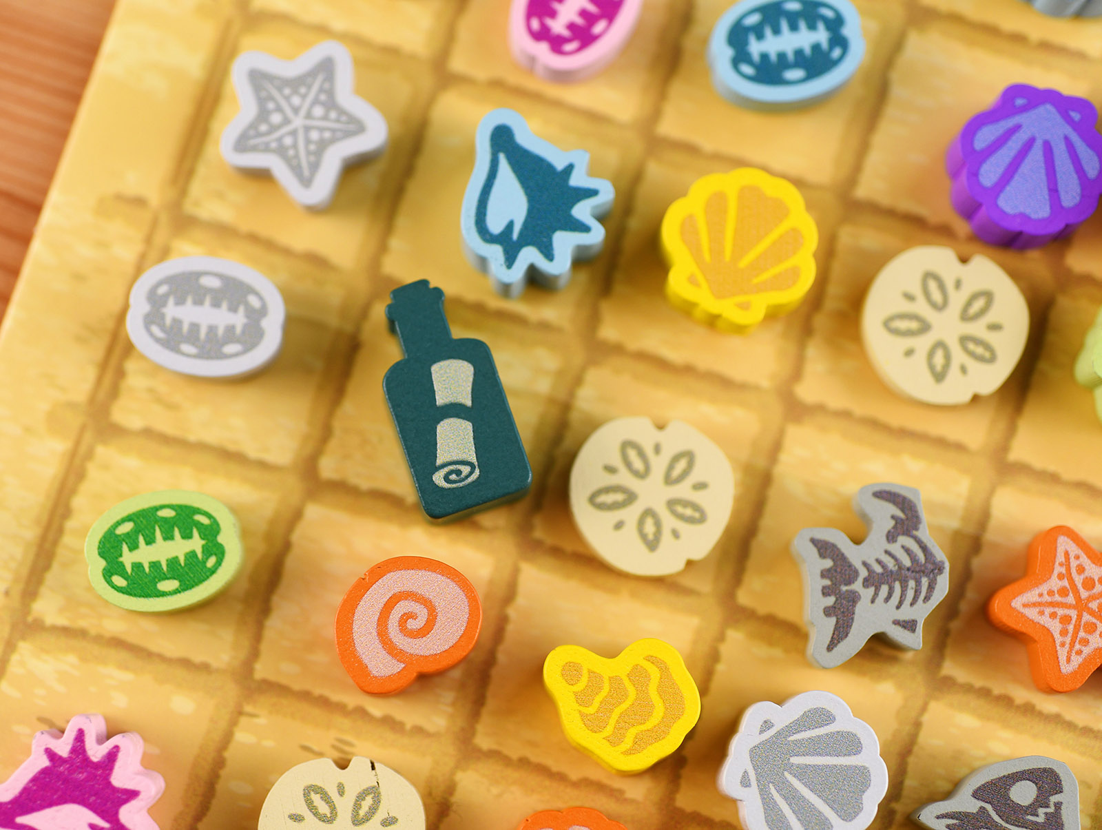 Le développement a été ensuite assez facile, l’équipe de KTBG suggérant l’ajout de quelques jetons spéciaux, fossiles et bouteille à la mer, et de cartes permettant à chaque joueur d’avoir deux « pions secrets » ignorés des autres joueurs.