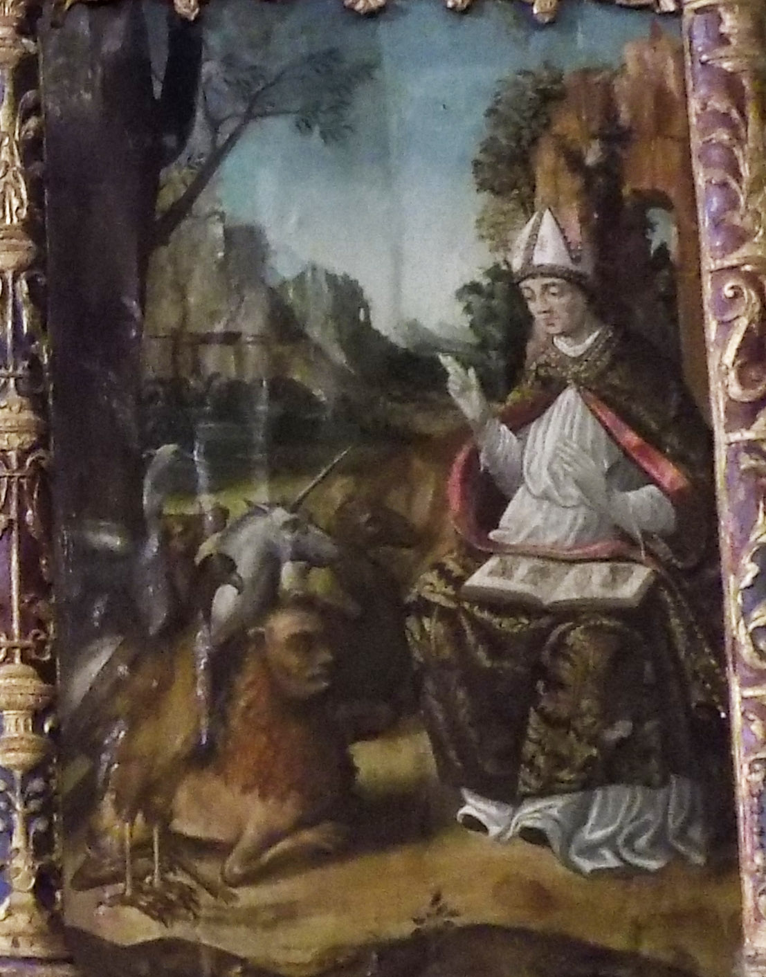 Si Saint François d’Assise, patron des animaux, n’a guère été représenté avec une licorne, c’est parce qu’il parlait surtout aux oiseaux et est sans doute venu trop tard dans une Italie où les quadrupèdes unicornes étaient rares. Je n’ai trouvé qu’un tableau du XVIIIe siècle, donc tardif, où une licorne de mer figure parmi ses auditeurs.