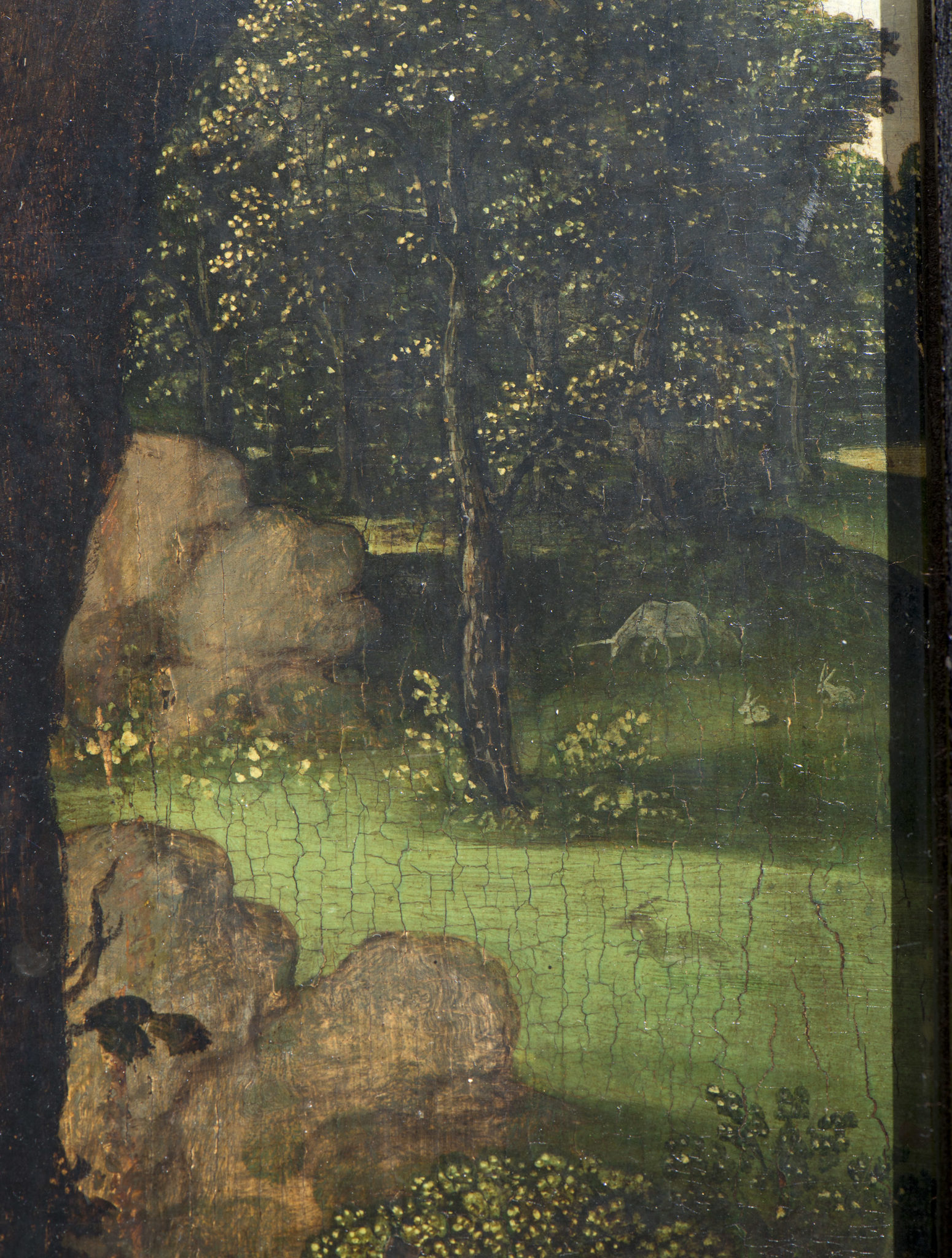 Au musée des Beaux-Arts de Montréal se trouve un tableau de Jan Swart van Groningen, Le Christ dans un paysage, une peinture du XVIe siècle hésitant entre maniérisme italien et sobriété luthérienne. Je m’apprêtais à le citer dans mon chapitre sur la solitude christique de la licorne lorsque j’ai découvert qu’il n’abritait pas, comme on l’a longtemps cru, une licorne mais deux, toutes deux discrètes et solitaires dans des coins opposés du tableau. Quelques jours plus tard, je recevais un email de la sympathique équipe du musée avec, en pièce jointe, le rapport de recherche fait en 1996, lors de l’acquisition du tableau. J’appris ainsi que les spécialistes étaient loin d’être d’accord sur l’identité du personnage central, le Christ, Jean-Baptiste ou l’apôtre Philippe. Si une seule licorne peut être un attribut christique, ou, si l’on a affaire à Philippe ou jean-Baptiste, une représentation du Christ qui se balade dans les environs, deux ne font guère de sens, et l’artiste a peut-être simplement peint la faune de Palestine, où chacun savait que gambadaient librement les licornes. D’autres animaux du tableau, notamment le très visible escargot au premier plan, symbole habituel de la résurrection et principal argument en faveur de l’hypothèse du Christ, ne sont pourtant pas là par hasard…. Bref, à partir de quelle taille un détail doit-il avoir du sens ?