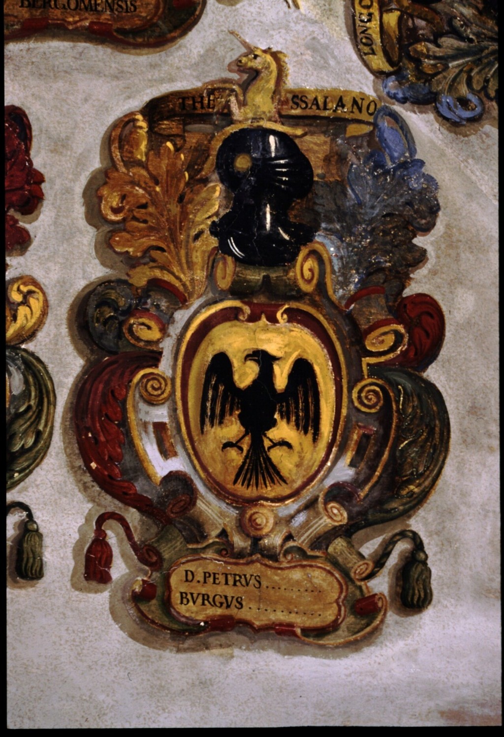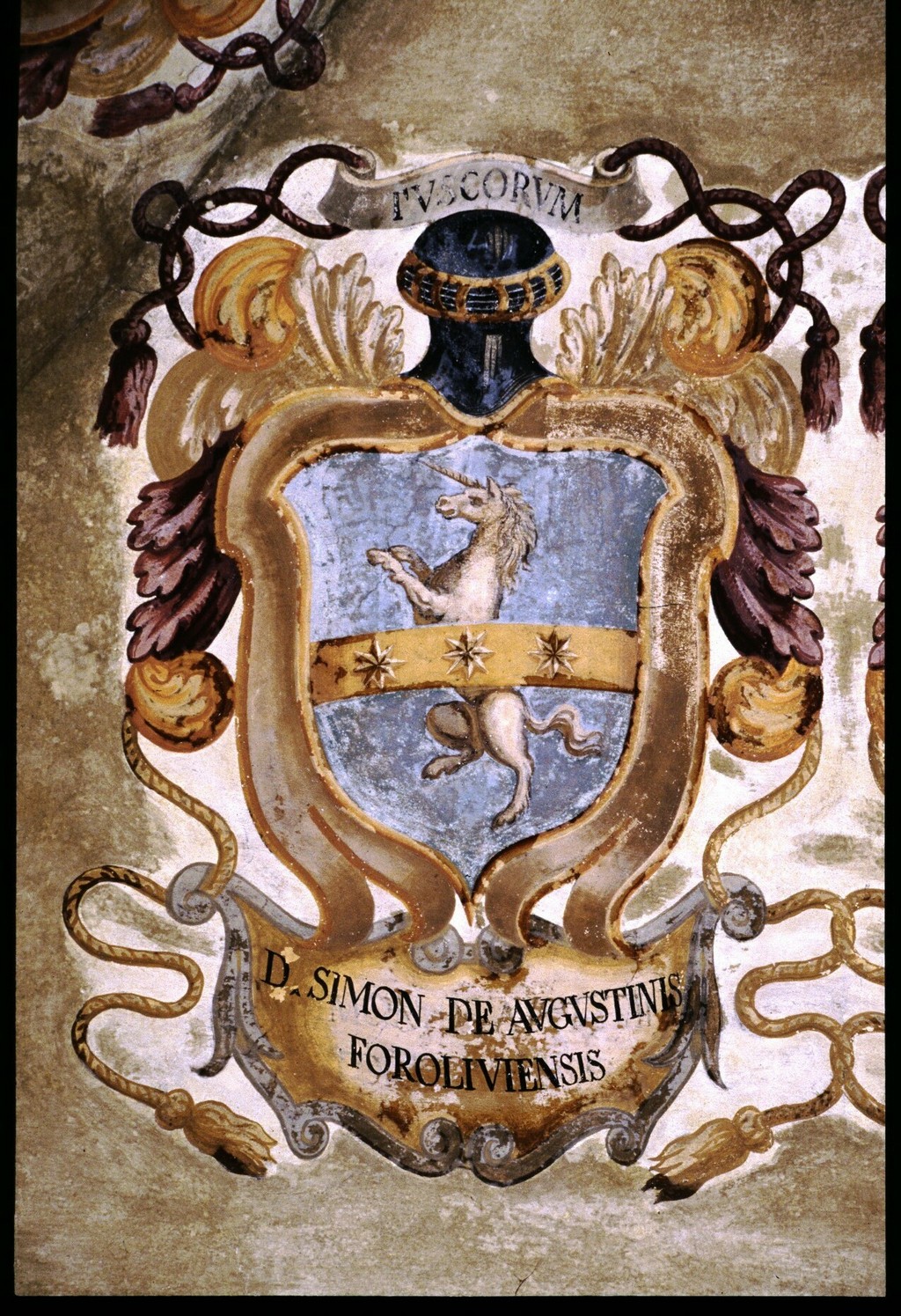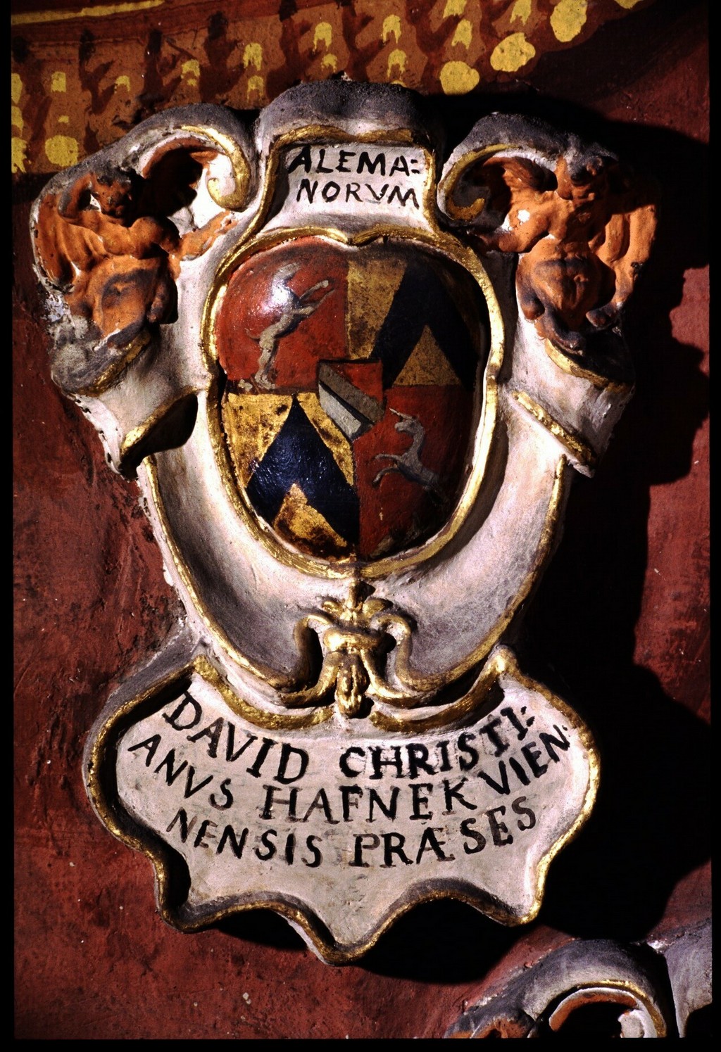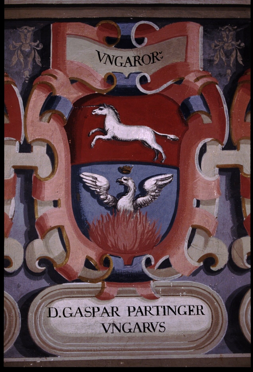 L’université de Bologne était, depuis le XIIe siècle, l’une des plus renommées d’Europe. Au XVIe siècle fut construit l’archigymnase – archiginnasio – qui resta jusqu’en 1803 le siège des facultés de droit, de médecine, de mathématiques et de sciences naturelles. Les murs en sont abondamment décors par les plus de six-mille blasons des maîtres d’étude et des plus brillants étudiants qui s’y sont succédé. L’université de Bologne attirait bien sûr de nombreux étudiants du Nord de Italie, de Suisse, d’Autriche et de Hongrie, et plusieurs dizaines de licornes rampent et passent sur les murs de l’archigymnase.