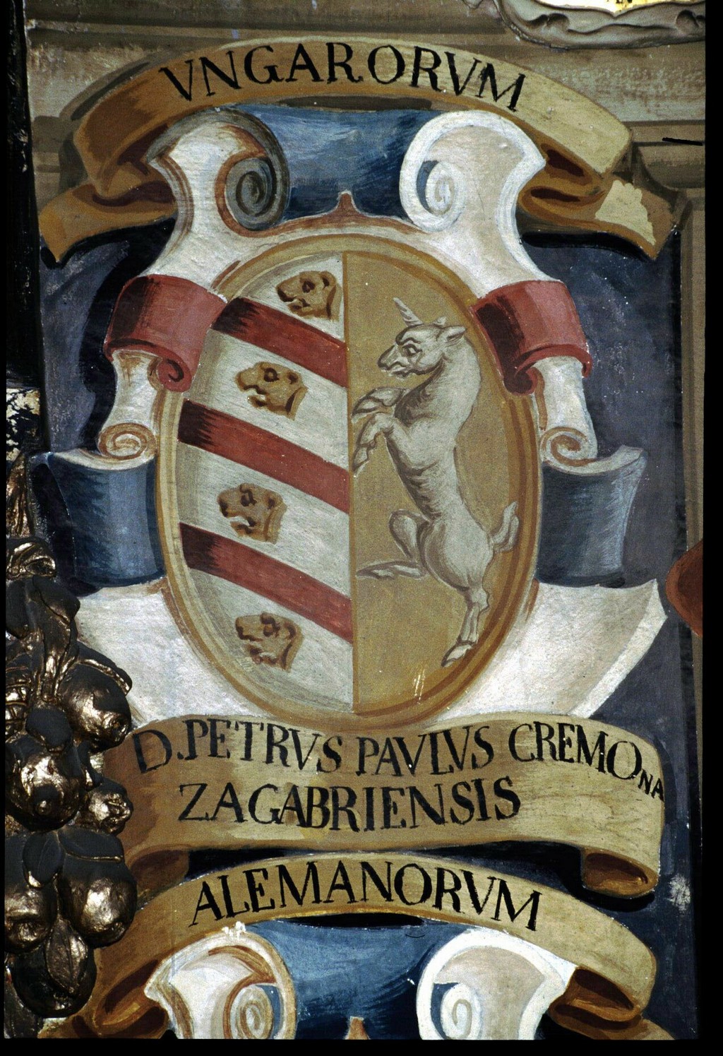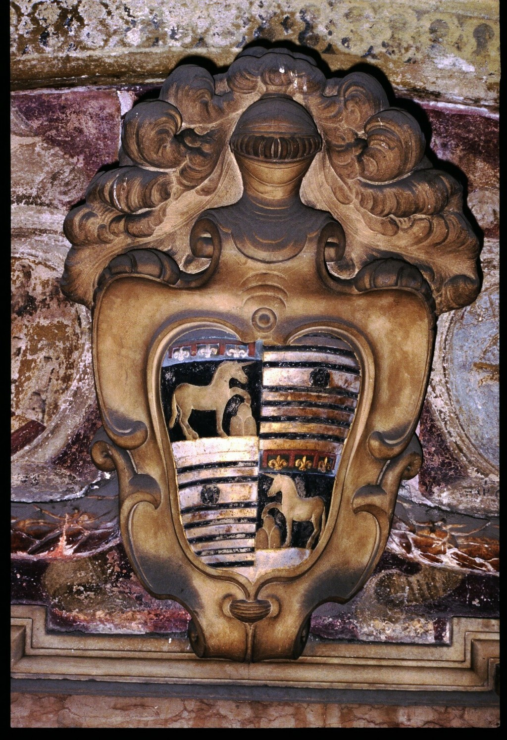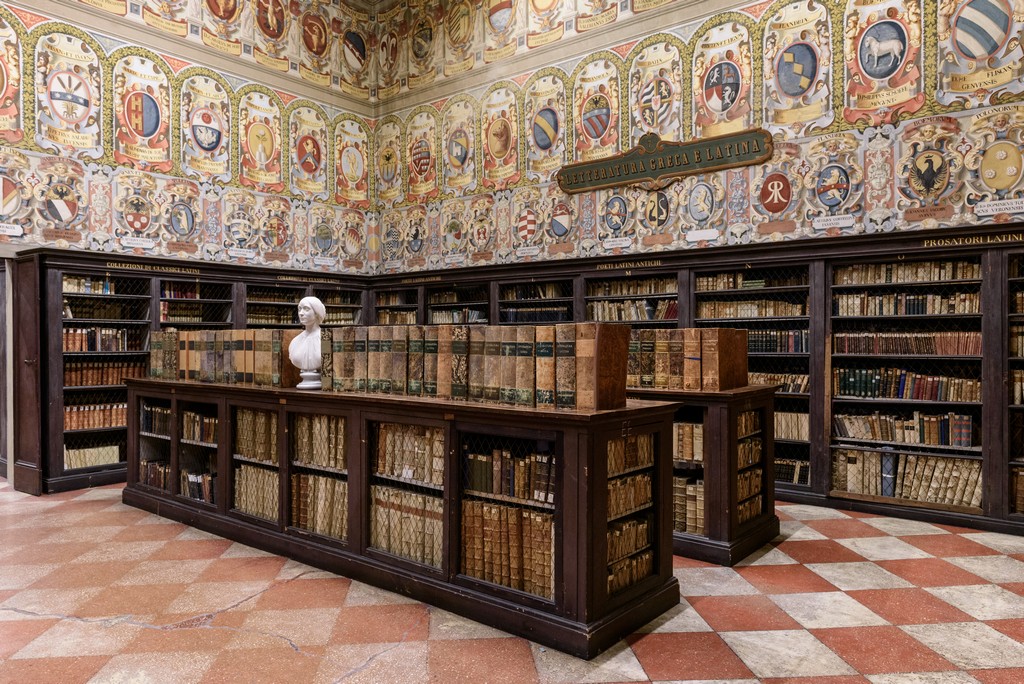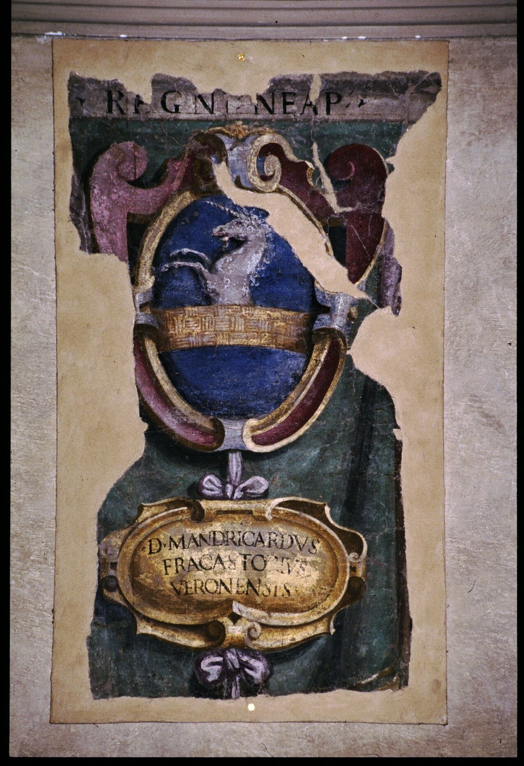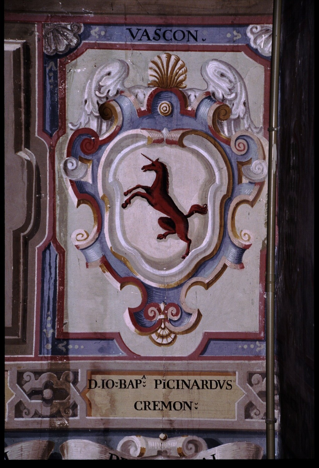 L’université de Bologne était, depuis le XIIe siècle, l’une des plus renommées d’Europe. Au XVIe siècle fut construit l’archigymnase – archiginnasio – qui resta jusqu’en 1803 le siège des facultés de droit, de médecine, de mathématiques et de sciences naturelles. Les murs en sont abondamment décors par les plus de six-mille blasons des maîtres d’étude et des plus brillants étudiants qui s’y sont succédé. L’université de Bologne attirait bien sûr de nombreux étudiants du Nord de Italie, de Suisse, d’Autriche et de Hongrie, et plusieurs dizaines de licornes rampent et passent sur les murs de l’archigymnase.