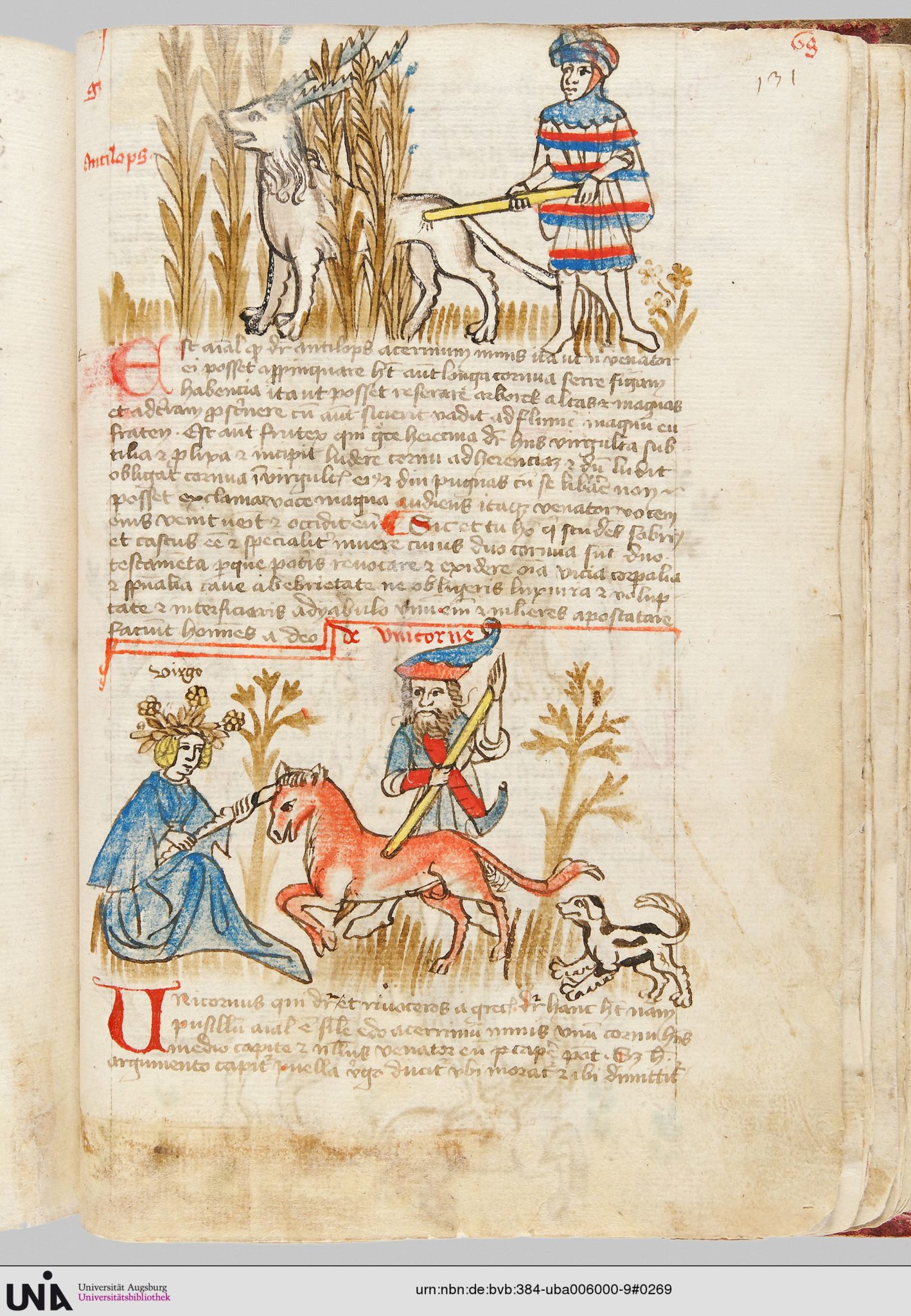 Sur cet autre manuscrit, la corne est plus convaincante mais ce sont les pattes qui posent problème. Leiden UB, ms BPL 14A, fol 89v.