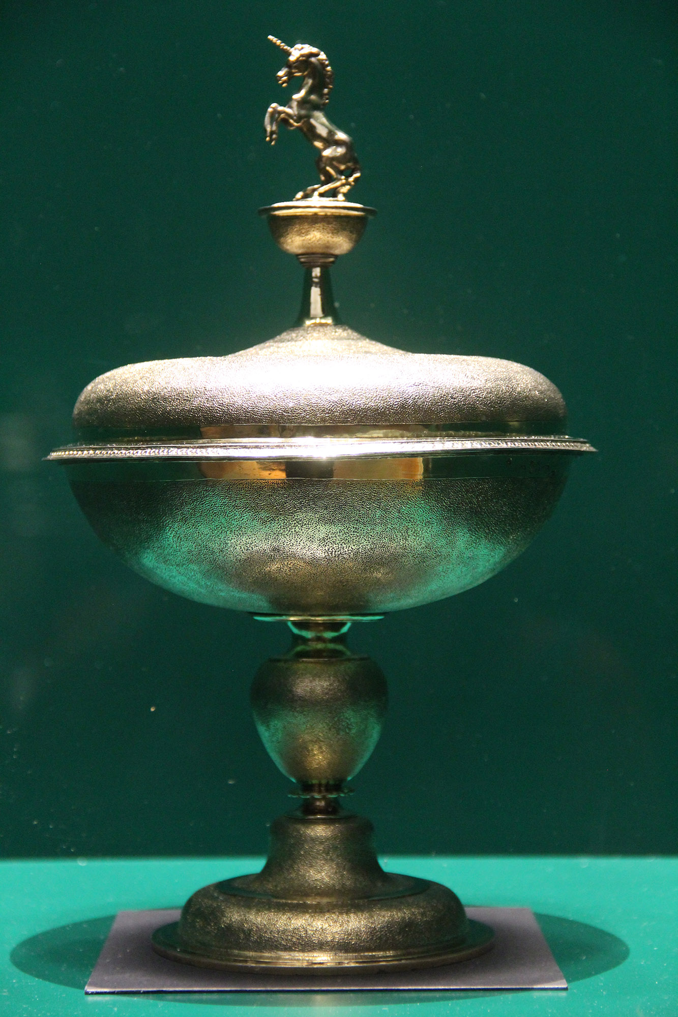 Des plats, des vases ou des pokals, gobelets dotés d’un couvercle utilisés pour porter des toasts, pouvaient avoir forme de licorne, ou être décorés d’une ou plusieurs licornes gravées ou sculptées.