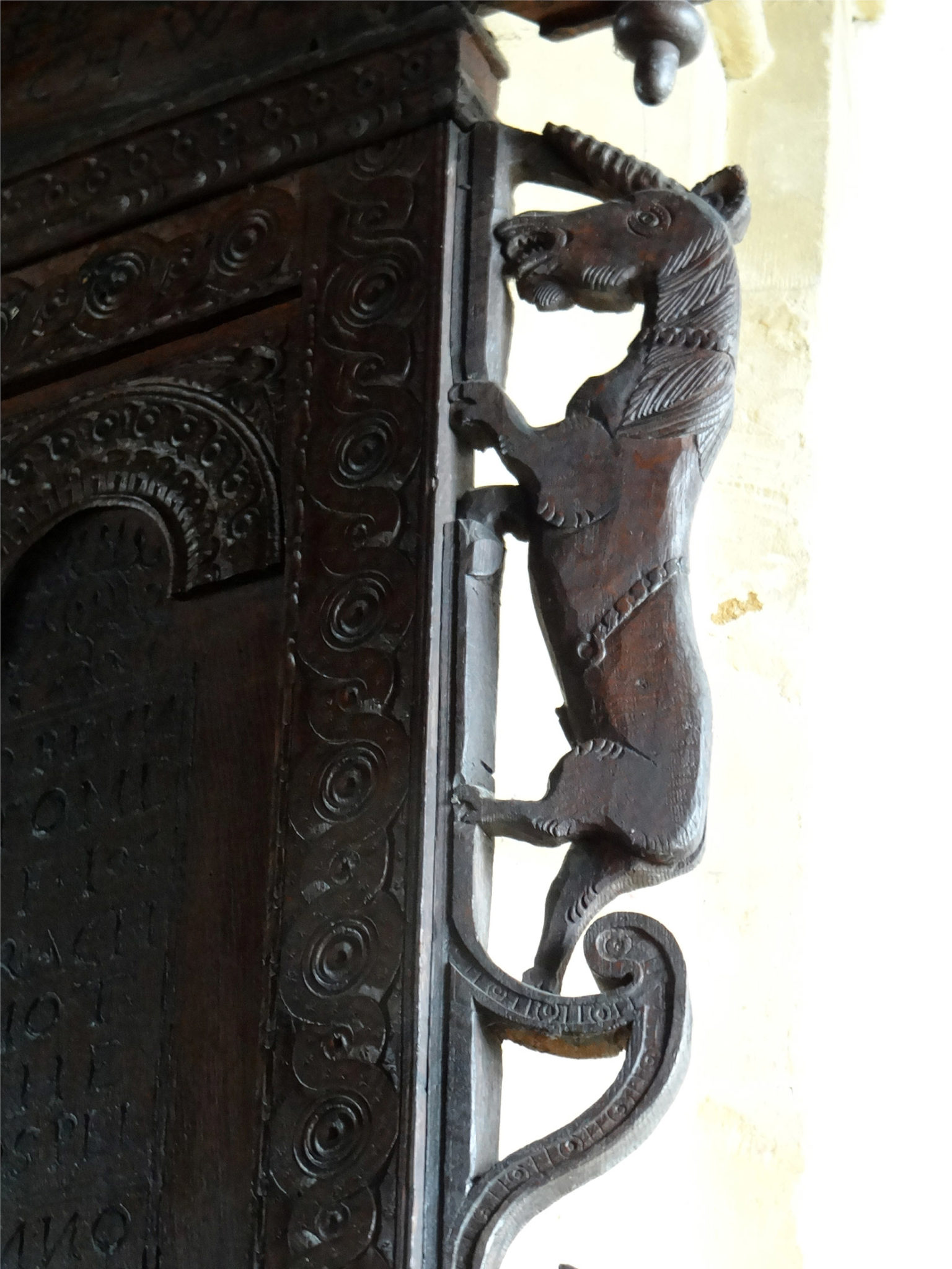 Toutes les licornes de bois ne se trouvent bien sûr pas dans les églises, en voici quelques unes décorant des lieux profanes, même si la dernière a un thème religieux.